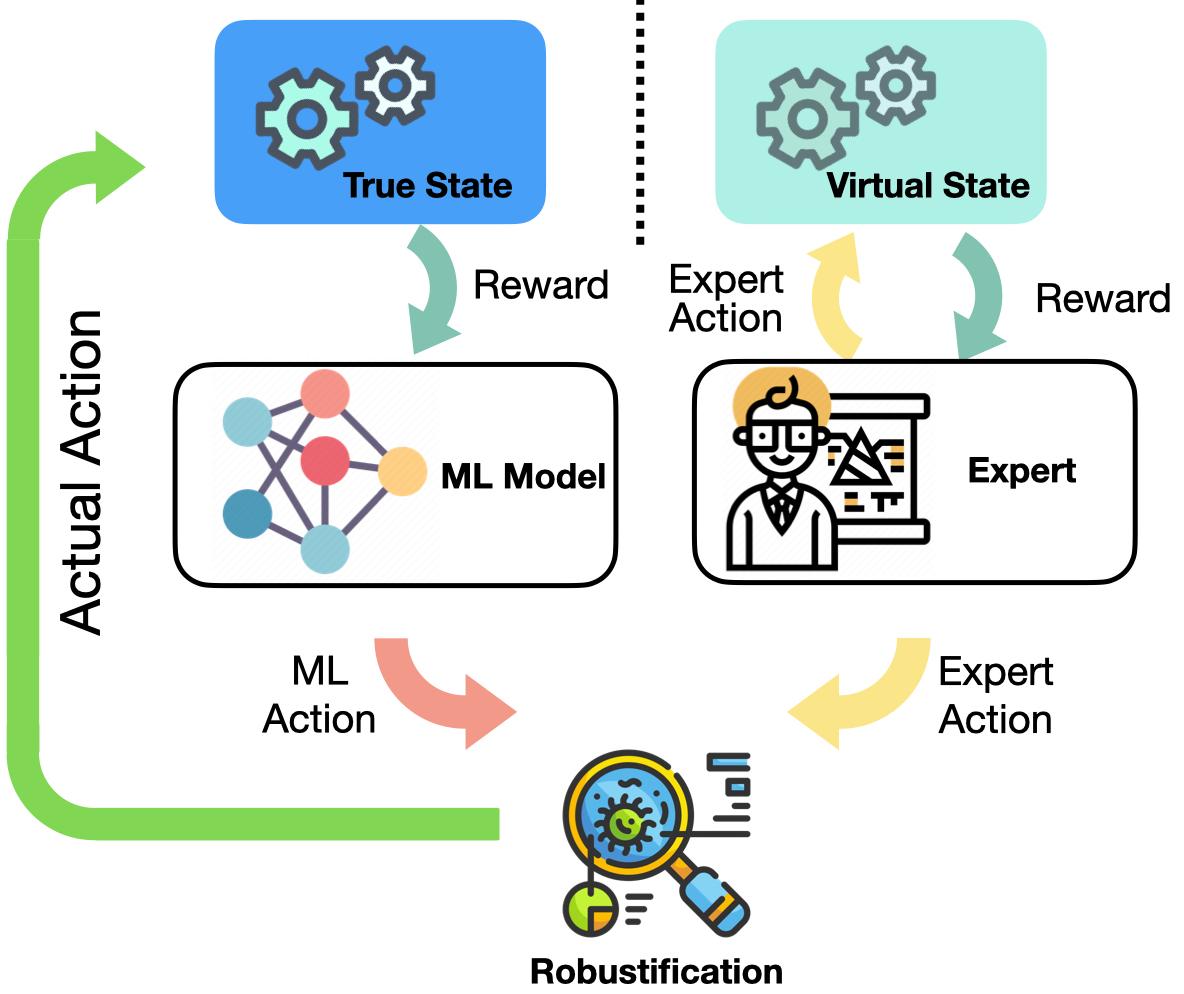 A novel RL-based approach for edge-weighted online bipartite matching with robustness guarantees, achieving both good average-case performance and strict worst-case guarantee. This framework (LOMAR) supports training the RL policy by explicitly considering the online robustification operation.
